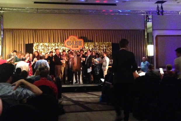 Nick Clegg put in an appearance at Glee Club last night – albeit only in 2-dimensional form as a cardboard cutout – while Lib Dem activists sang a timely (or perhaps inappropriate) song about bombing Iraq called the ‘Iraqi-cokey’: