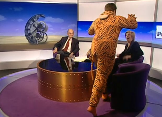 Some MPs really will do anything to get noticed. Today Alec Shelbrooke pitched up on the Daily Politics in a tiger onesie. Apparently it’s all for a good cause, but that didn’t seem to reassure fellow guest Charlotte Leslie all that much…