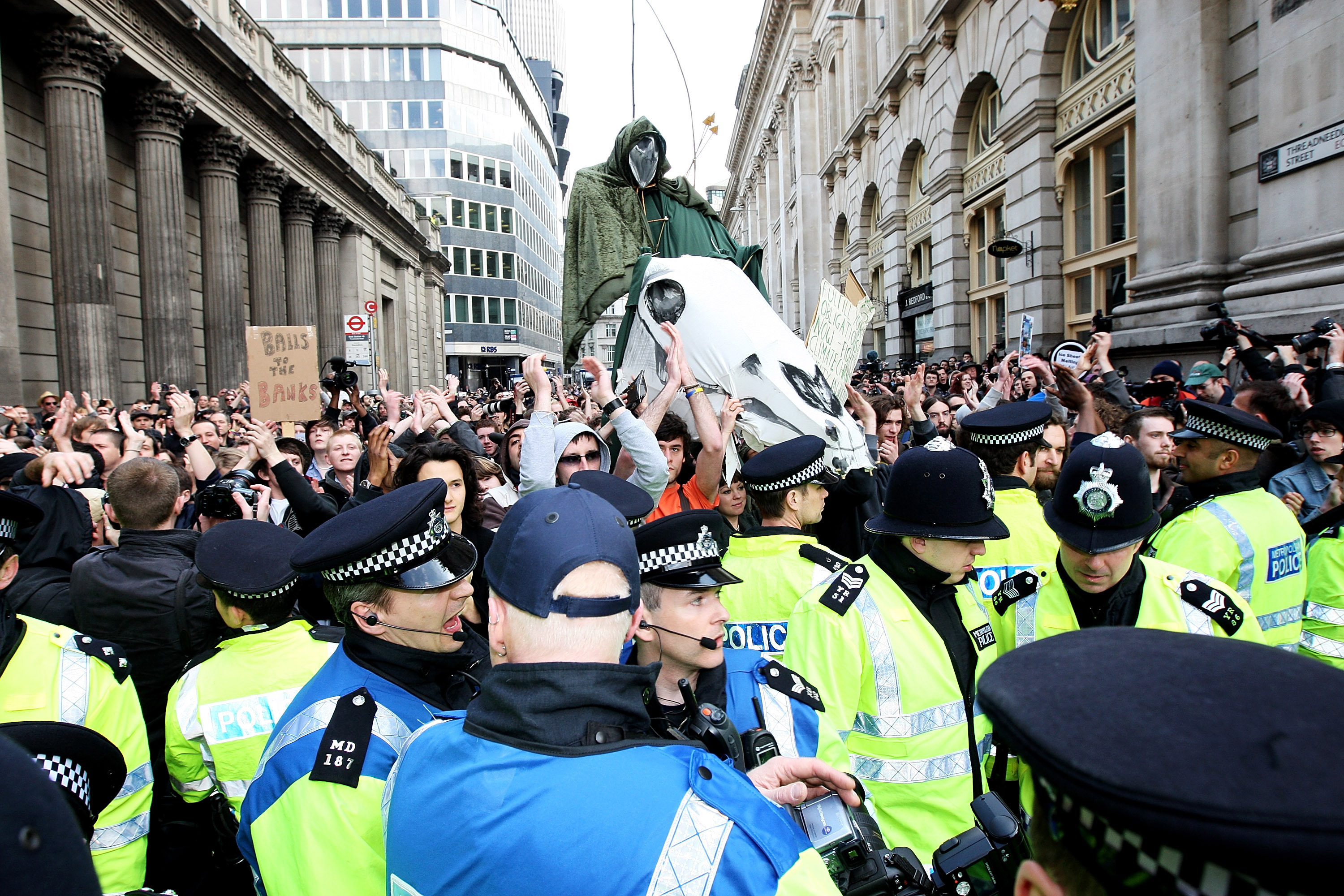 Given the newspaper headlines over the last few days, one could have been forgiven for thinking the UK, or at least the City of London, had been taken over by anarchists. Wherever you looked there were dramatic images of broken windows and bloodied and angry protesters. But the give-away is that in every snap there are about 8 photographers. It can’t be much of a riot, if there are that many cameras recording every act of violence.