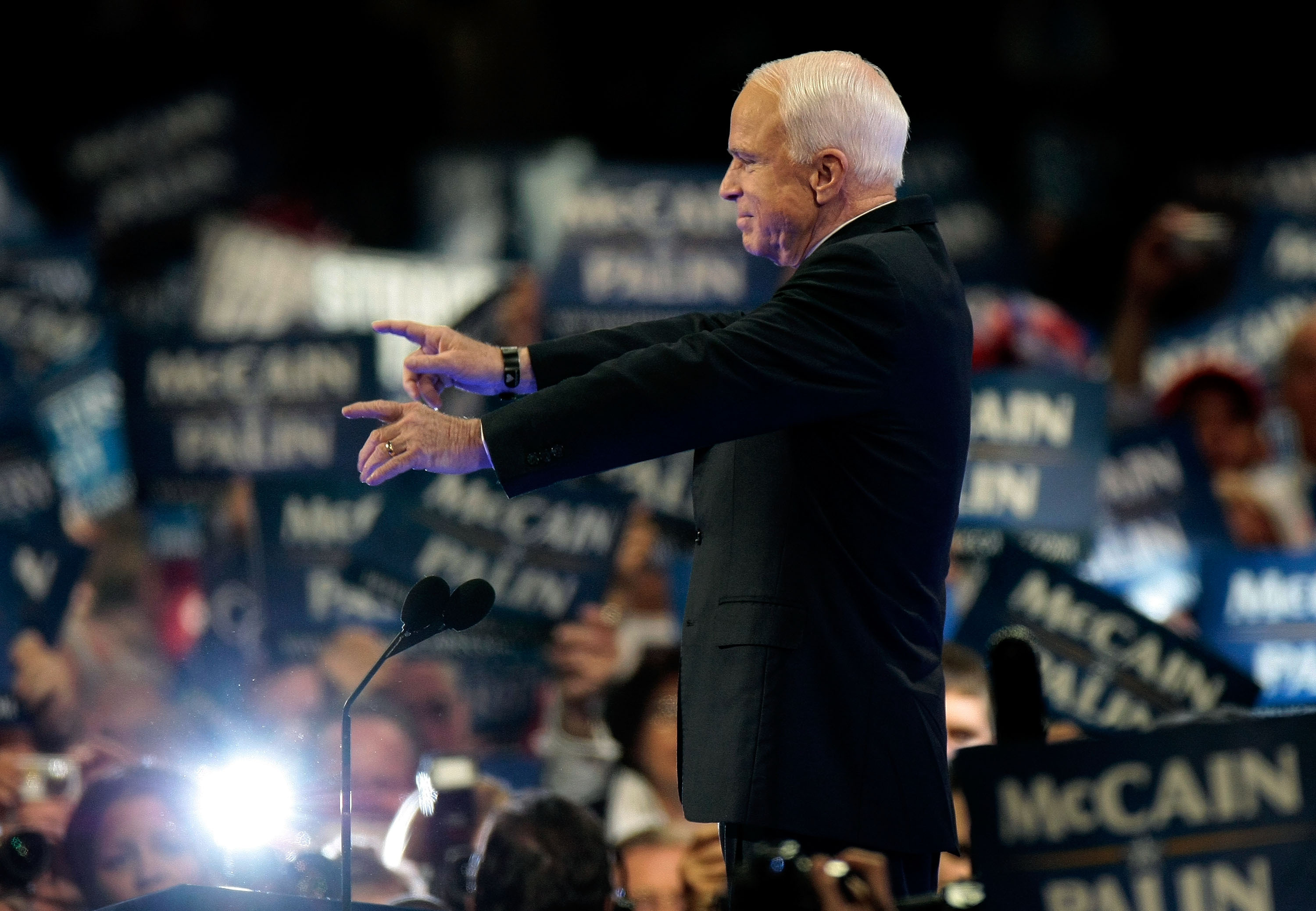For his speech last night, John McCain had a walkway built into the floor – perhaps to remind him of the town hall settings he’s most comfortable with. He’s not a great platform speaker, and proved this yet again yesterday. He did not eclipse Palin. But the text was interesting, and here’s my take on some of it.