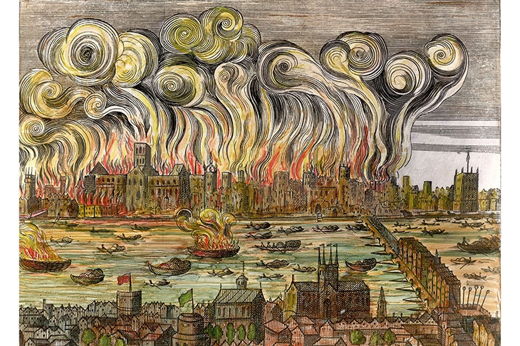 The scene is London in 1667, the city recovering from the Great Fire the year before, with 80,000 people homeless and refugee camps established on the outskirts. Andrew Taylor introduces his readers to life as it survived there and involves them in the politics of Charles II’s court. Cobblestones are ‘slick with rain’, rushlights smell vile because of the rancid fats they were dipped in; in Covent Garden, thieves, peddlers and beggars ply their trades ‘like lice in a head of hair’ — and if you want to travel on a Sunday you must acquire a magistrate’s warrant.