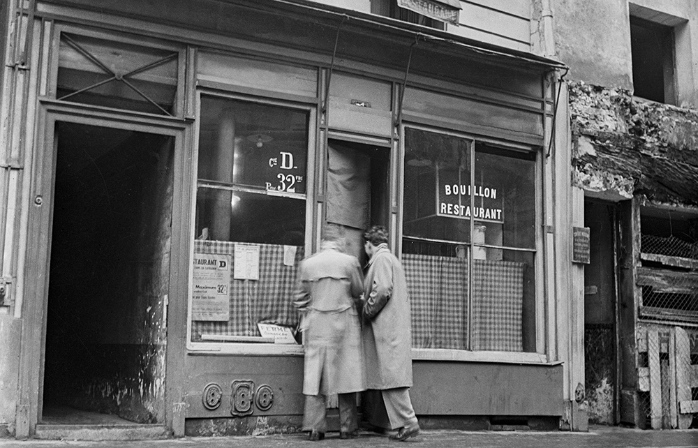 A ‘free particle’ in Paris, the young Liebling patronised Latin Quarter restaurants ‘neither chic nor sordid’ and learned, like a novice bridge player, what hand to play when composing the menus of his complex splurges. Not having too much money was an advantage: ‘In learning to eat, as in psychoanalysis, the customer, in order to profit, must be sensible of the cost.’ Before long Liebling knew how to spot the signs of a good restaurant – one where you might see two priests or two ‘sporting girls’ eating together, or one, like Maillabuau’s in rue Sainte-Anne, where ‘the men, for the most part, showed tremendous devantures [frontages] which they balanced on their knees with difficulty as they ate’.