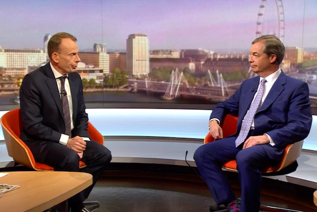 While Farage answered a number of the questions, he eventually turned his ire on Marr – accusing him of ‘being in denial’: