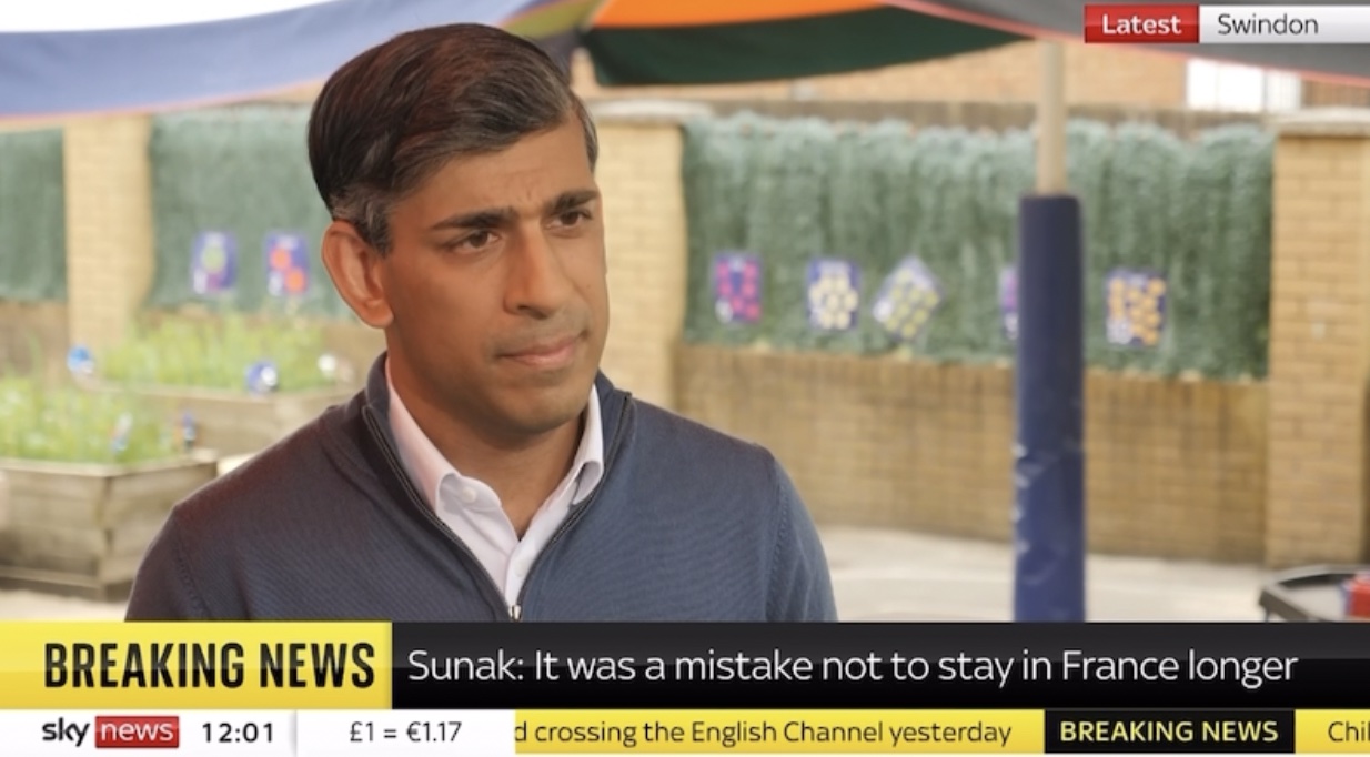 Oh dear. The story of the day may well become the story of the election campaign as Prime Minister Rishi Sunak struggles to explain why he missed part of Thursday’s D-day commemorations in Normandy to film a pre-recorded ITV interview. On Friday morning, Suank apologised on Twitter for snubbing aspects of the 80th anniversary events — which were attended by a number of international leaders including France’s Emmanuel Macron, Germany’s Olaf Scholz and President Biden — and at lunchtime the PM eventually faced the cameras.