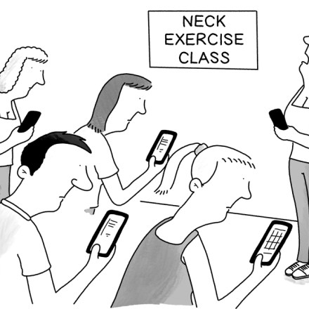‘Now lift your chin up to the ceiling, away from your phone.’