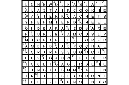 ‘Never eat an oyster unless there’s an R in the month’ (Brewer). Eight unclued lights (in appropriate order) start with abbreviations of the months said to be safe for OSTREOPHAGES (1): SEPTIME (18), OCTANDRIA (26), NOVICE (34), DECELERATING (43), JANIFORM (11), FEBRIFACIENT (13), MARION (19D) and APRICOT (28). First prize Dennis Cotterell, Carlisle Runners-up Peter