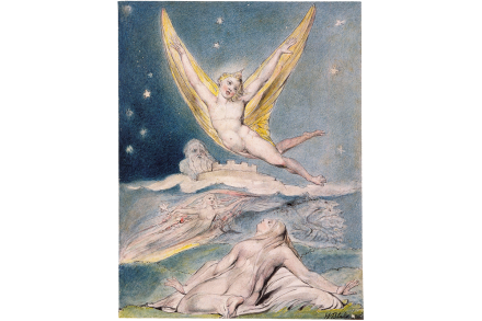 One day while out walking, William Blake saw angels sitting in the trees: “bright angelic wings bespangled every bough like stars.” He was eight years old. His fascination – some have called it an obsession – with angels lasted for the rest of his life. When he sat to have his portrait painted by Thomas Phillips, the two men began to argue about who painted a better angel, Michelangelo or Raphael. Phillips, not unreasonably, suggested that since Blake had never seen even an engraving by Michelangelo, he was not qualified to give an opinion on the matter. “But I speak from the opinion of a friend who could not be