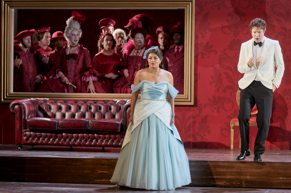 There’s a lot of amusing detail like that, and Sussie Juhlin-Wallen’s costume designs were particularly fun. A Ruddigore-style chorus of ancestors, dressed for their respective eras, step out of their picture frames to strike Regency attitudes or practise their golf swing. Dandini (Charles Rice, splendidly louche) conducts a one-man cocktail masterclass while the denouement unfolds. By and large, Burbach and her cast kept their comedic plates spinning, though as ever in the Coliseum there are spots on stage where with the best enunciation in the world (and Bailey led the pack here) the words become inaudible. Christopher Cowell’s new English translation has its moments (‘Get a wiggle on!’) but one of the pivotal scenes – when the newly royal Cinders begs her stepfather to call her ‘daughter’ – didn’t clutch at the heart as it sometimes can.
