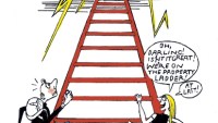 Nine cartoonists are shortlisted for the first ever Michael Heath Award for cartooning. The theme of the contest, sponsored by John Lobb, is ‘Man in Motion’. Work by four of the shortlisted artists is below. We’ll print four more next week, and the winner on 7 December. Thanks to all who entered — and congratulations